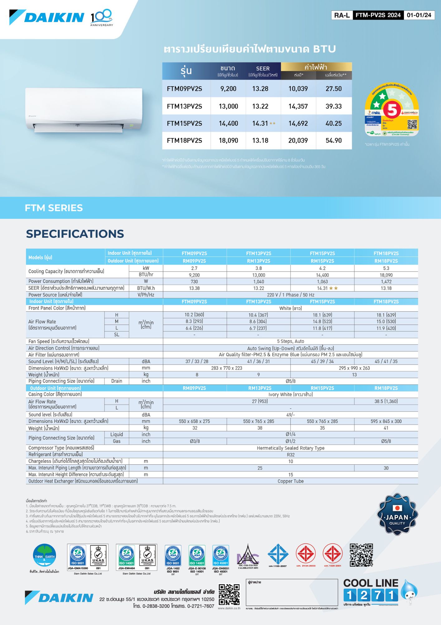FTM15PV2S/RM15PV2S | 14,400 BTU