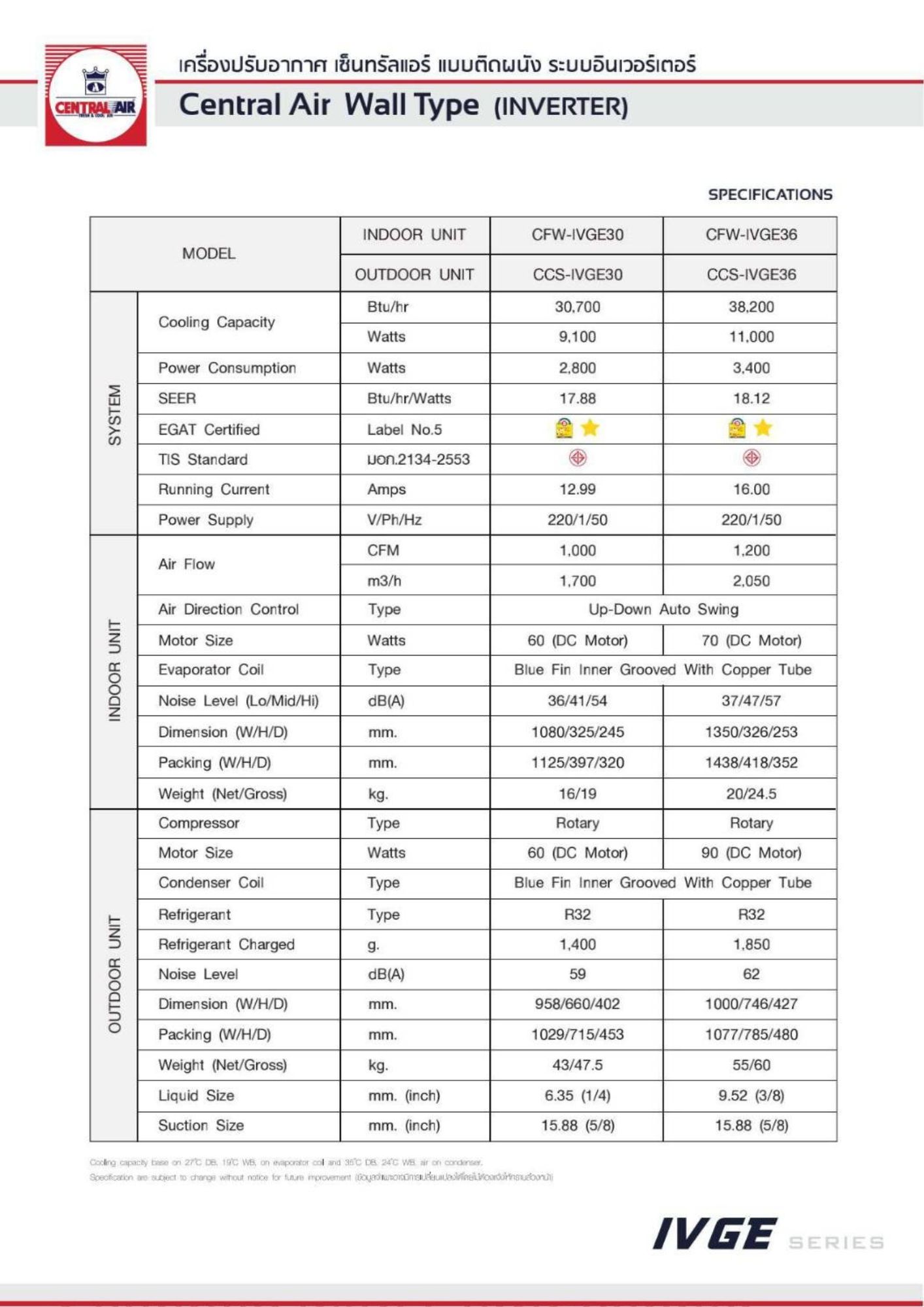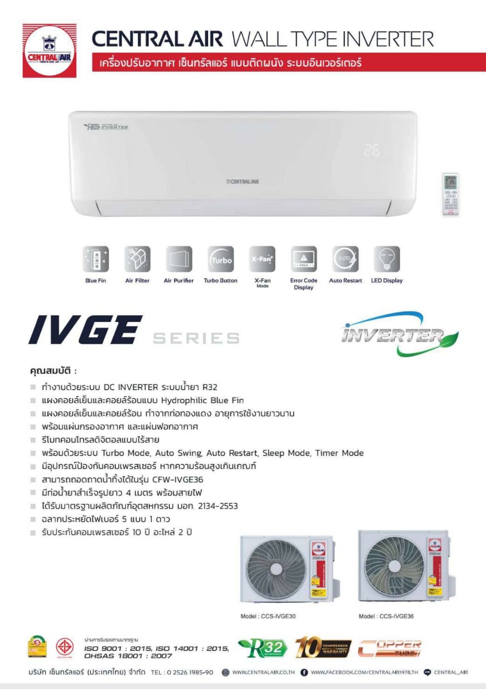 Central Air WALL TYPE INVERTER ฟรีติดตั้ง