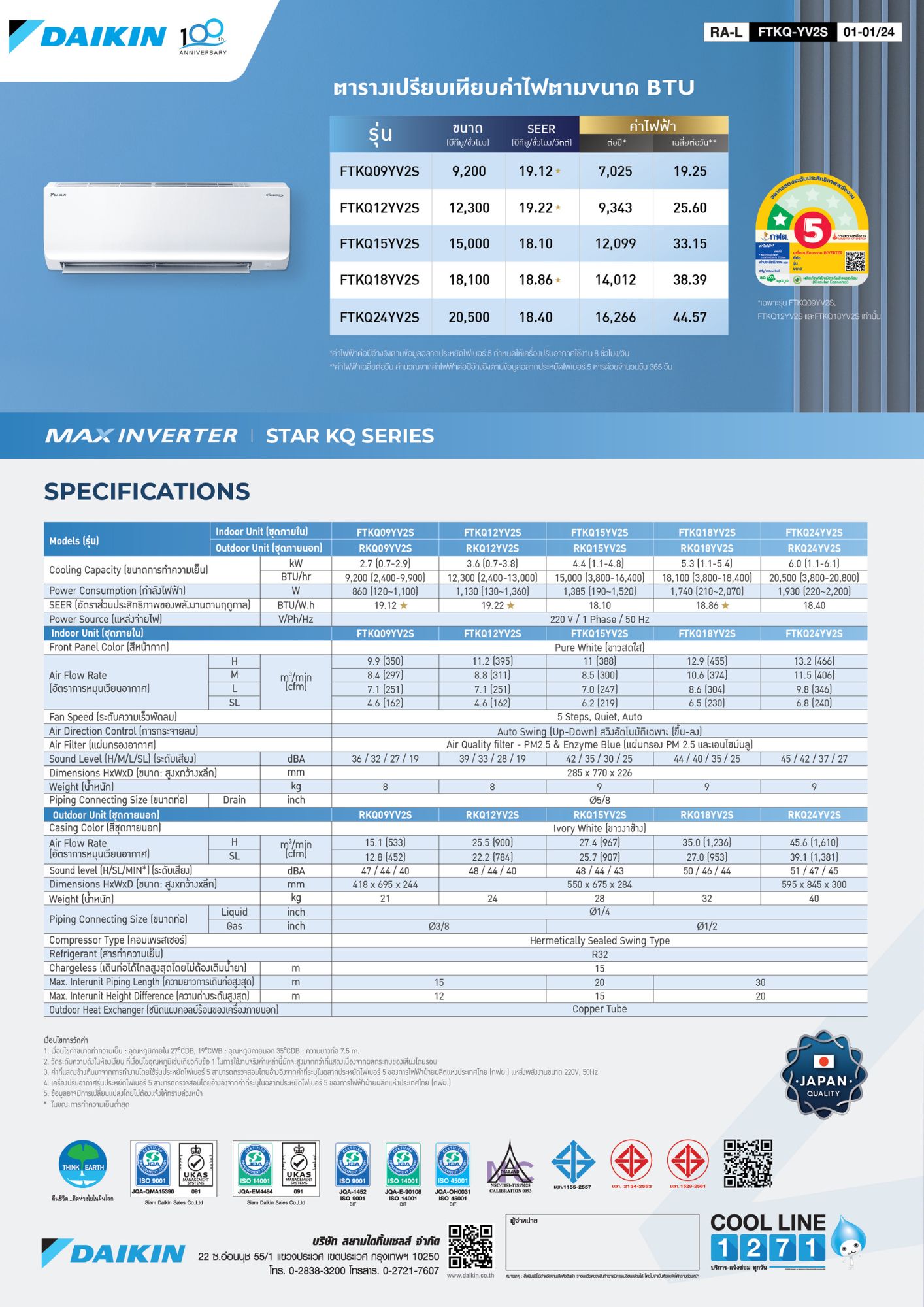DAIKIN FTKQ Series Inverter ฟรีติดตั้ง
